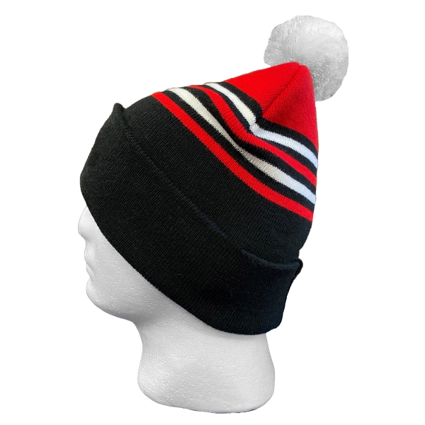 Bommelmütze mit Logo und Krempe